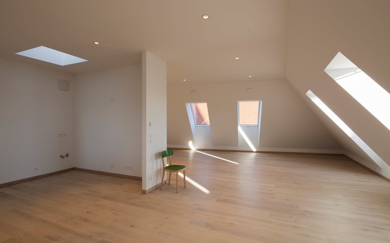 Ein Obergeschoß dient als Anwaltskanzlei. Im 2. Dachgeschoß wurde eine großzügige Maisonettewohnung realisiert.